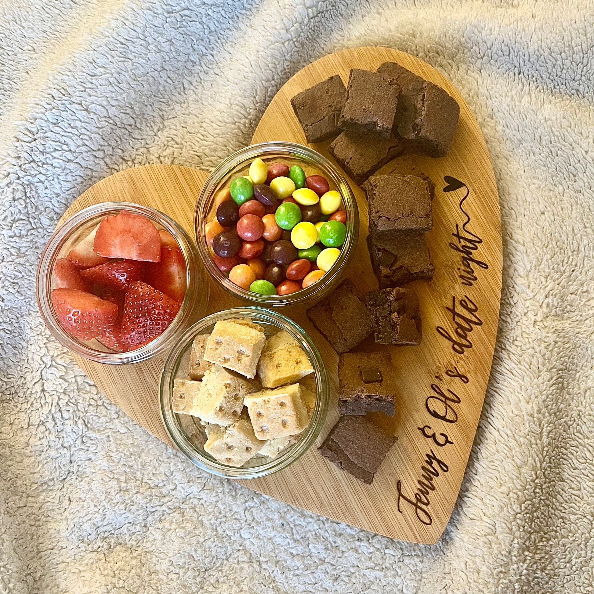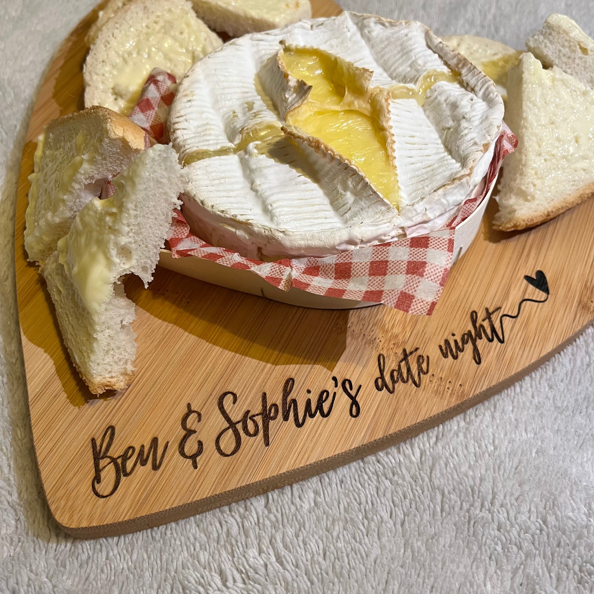 Make date night extra special with our bamboo heart boards. These are great to make a hamper gift that bit more special, especially when personalised!