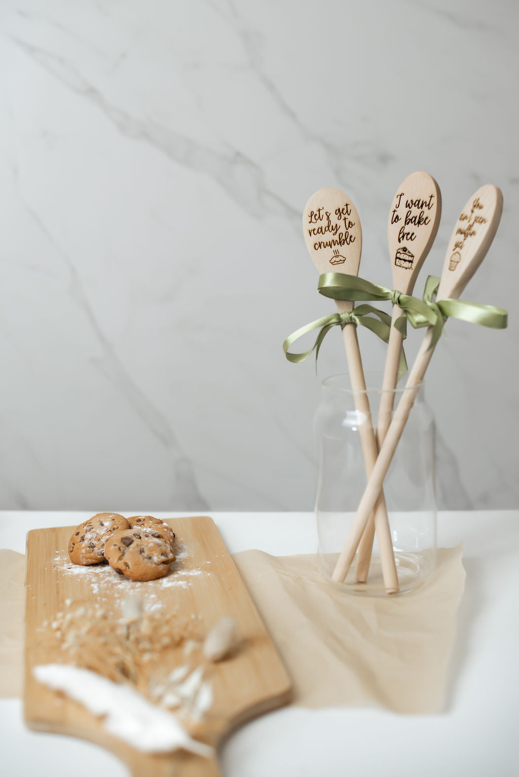 Our 'punny' baking spoons come in three designs, engravings as below, or we offer custom text.